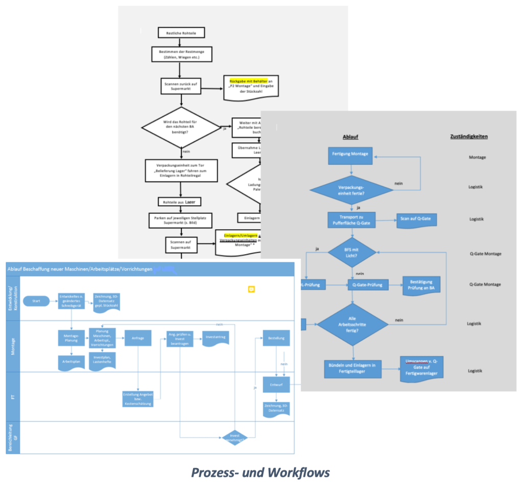 Dabei ist stets auch die Digitalisierungbzw. Digitale Transformation der Prozesse im Blick, die mit Ihrer IT-Abteilung oder Systemhäusern abgesprochen wird. Anhand der Zuständigkeiten im Workflow können auch die Rollen und Rechte im IT-System festgelegt werden. Wir haben Erfahrungen mit verschieden ERP- und anderen IT-Systemen (MES, BDE, CRM etc.), vor allem auch mit SAP. Bei Bedarf sprechen wir auch Anforderungen und Spezifikationen an Systeme mit Ihrer IT-Abteilung bzw. dem Systemhaus ab.
