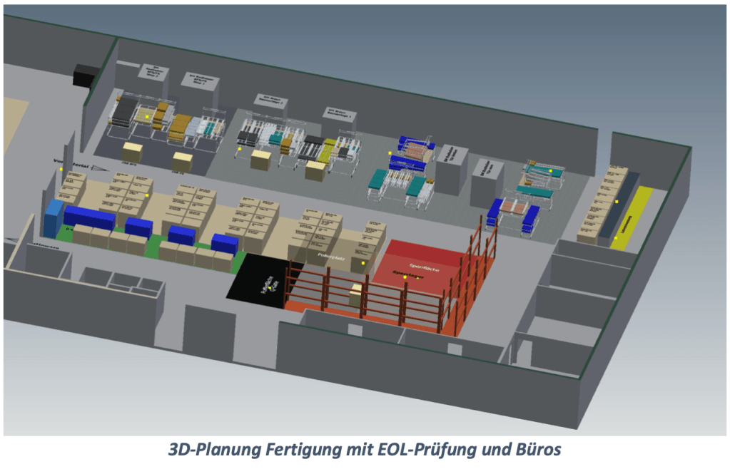 Bereits in mehreren Projekten haben wir auch die Werkplanung bzw. Planung eines Produktionsbereiches übernommen. Dies können wir unabhängig, ob wir erst die Produktion und anschließend die Halle rundherum planen können oder die Produktion in eine bestehende Halle integriert werden soll. Dies kann gerne auch unter Einbeziehung modernster Abläufe geschehen.